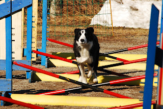 Liinu ei enää aksaa. Mun pääkoppa ei kestä tuollasta perättäistä jatkuvaa onnistumisen ja sen jälkeen epäonnistumisen tunnetta. Kisat ei siis mennyt hyvin. Rimakorkeus oli 60cm ja koira jopa kieltäytyi hyppäämästä kahdella esteellä ja pudotti varmaan 4 rimaa. Muuten suoritus oli oikein hyvä, kontaktit ja erityisesti keinu varmaan hienoimpia mitä Liinu on tehnyt. Mutta kun agissa tarttis myös hyppiä :) Mutta onneksi tuosta Juniorista on kovaa vauhtia kasvamassa super-agilitykoira!